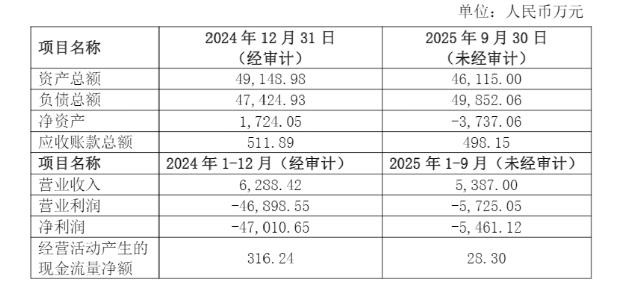 最新财务数据显示,2025年1—9月,青海中利实现营业收入5387万元,净利润亏损5461.12万元,经营活动现金流仅28.3万元,截至9月末净资产已为-3737.06万元,处于资不抵债状态。