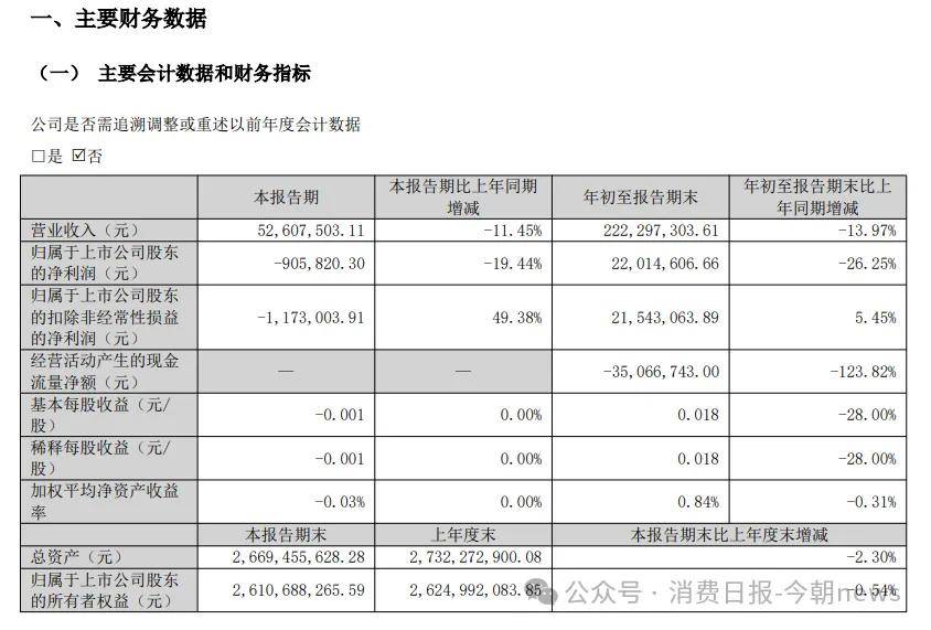 金字火腿最新下发的2025年三季报显示,今年前三季度,公司实现营收约2.22亿元,同比减少13.97%;归母净利润约2201.46万元,同比下降26.25%。