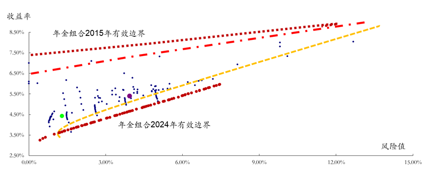 (三)年金基金战略资产配置有效边界显著往右下方移动