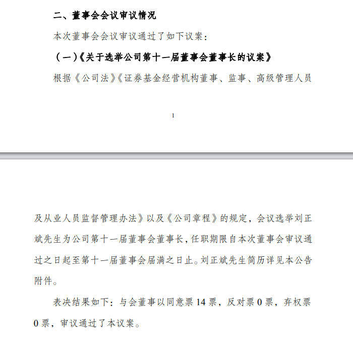 同时,长江证券选举刘正斌先生为第十一届董事会董事长,选举陈佳为第十一届董事会副董事长;聘任刘元瑞为总裁,聘任陈水元为副总裁兼财务总监,周纯为副总裁兼合规总监、首席风险官、董事会秘书,陈进为副总裁,王承军为副总裁,潘进为首席信息官,李庚为副总裁,黄太进为总审计师,任职期限自本次董事会审议通过之日起至第十一届董事会届满之日止。