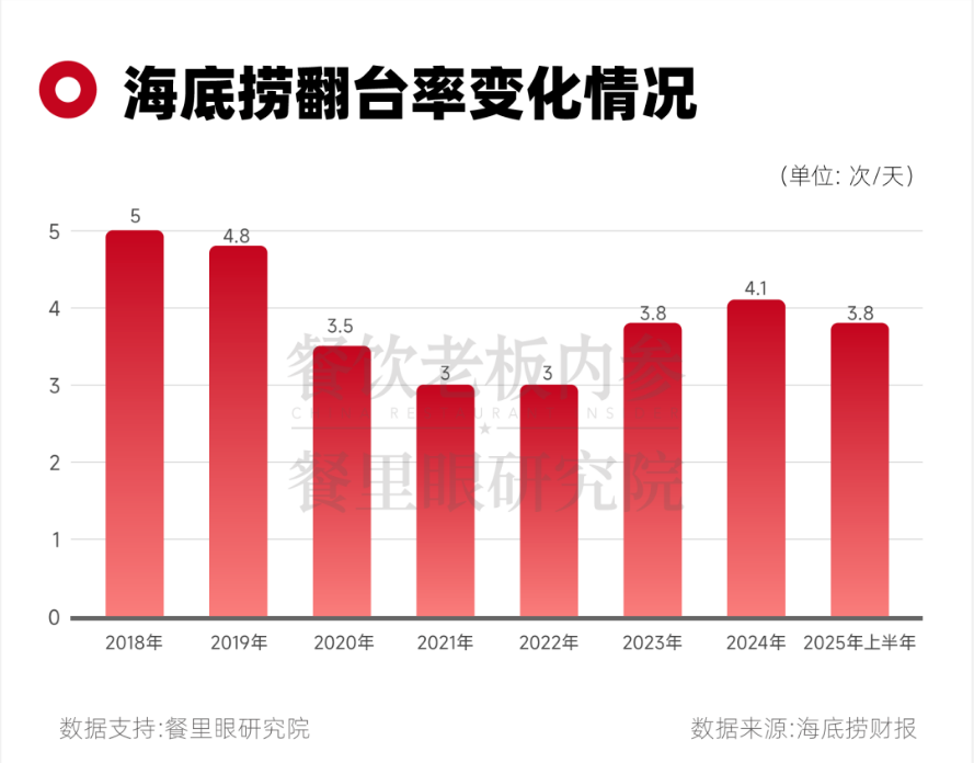 更令市场揪心的是核心指标的失守,其直营餐厅平均翻台率从4.2次/天降至3.8次/天,直接跌破了其内部规定的及格线4次/天,而曾经,它的这一数字能稳定在5次/天。
