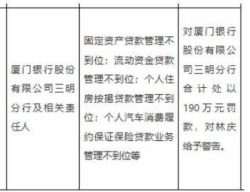 因流动资金贷款管理不到位等福建永安农商行被罚125万元