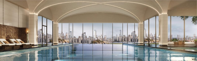 此外,重庆湾还打造了面积逾12000平方米的“1+7”顶级会所体系。会所设计灵感汲取自重庆传统吊脚楼与建筑大师赖特的“流水别墅”,建筑形态呈现垂直层叠、凌空悬挑的现代美学,辅以瀑布水景、天际无边泳池和落日观景廊桥。其犹如一艘悬浮于两江之上的“超级游艇”,为业主提供私宴、康体、会客等专属高端服务。