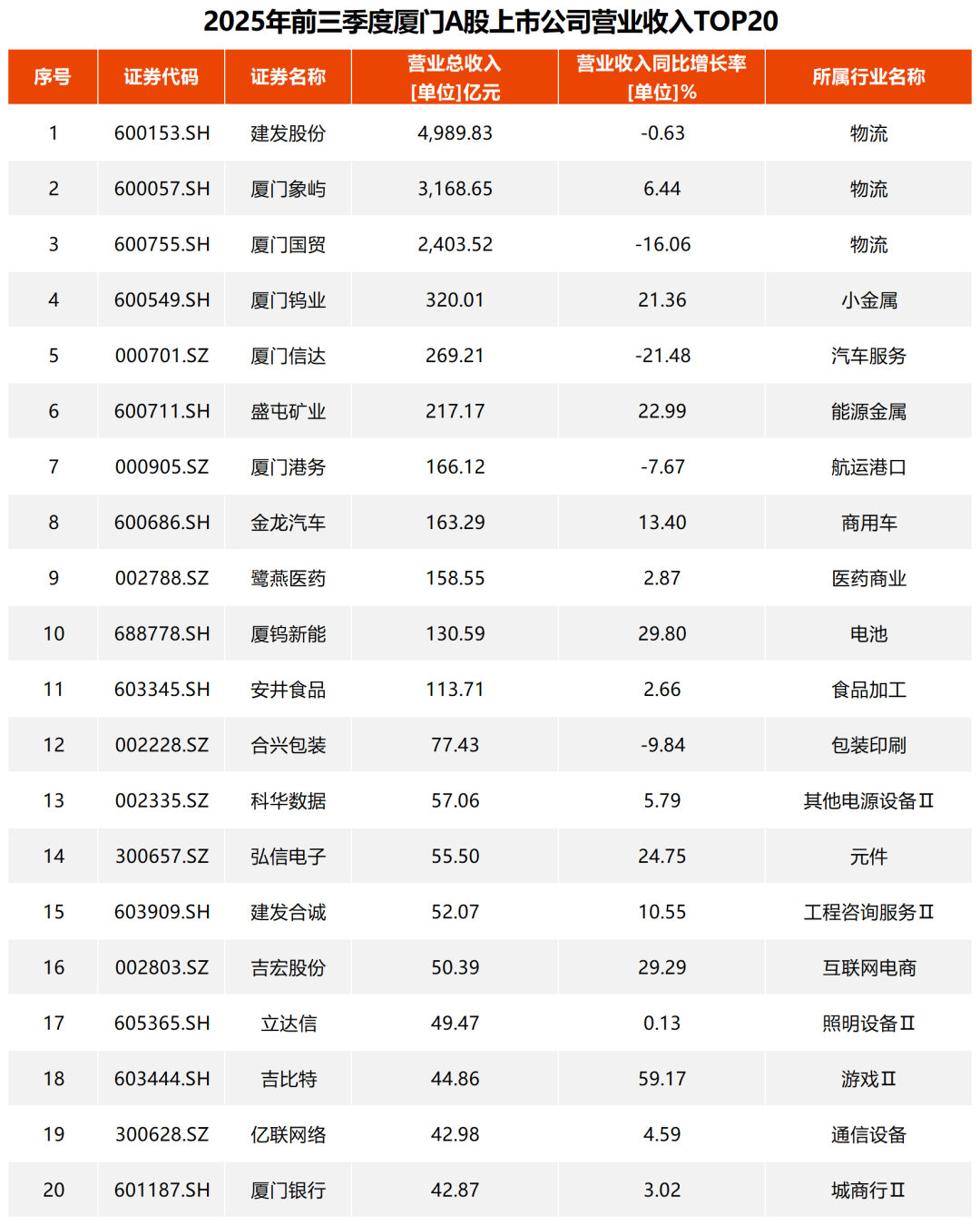 三季报中,厦门A股上市公司透露了哪些重要信息?【观澜财经】对此进行了统计梳理。