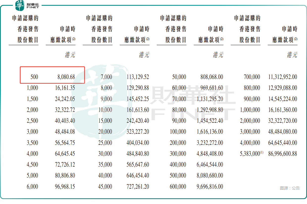 南华期货每手500股,入场费为8080.68港元。相较于同日开启招股的华芢生物-B、明基医院、印象大红袍,南华期货甲乙组共有21532手,中签率可能会比较高。
