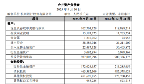 图源:杭州银行2025年三季报