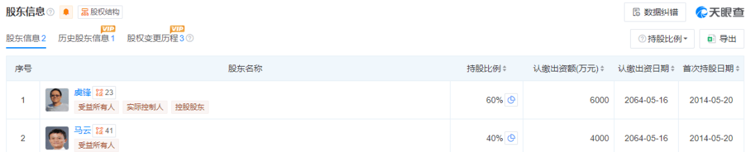 而上海云锋新创投资管理有限公司是虞锋、马云共同持股的公司,其中虞锋是大股东、实际控制人。