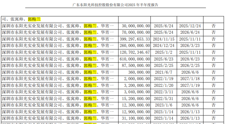 郭梅兰、张寓帅担保的部分情况(图源:东阳光2025年半年度财报)