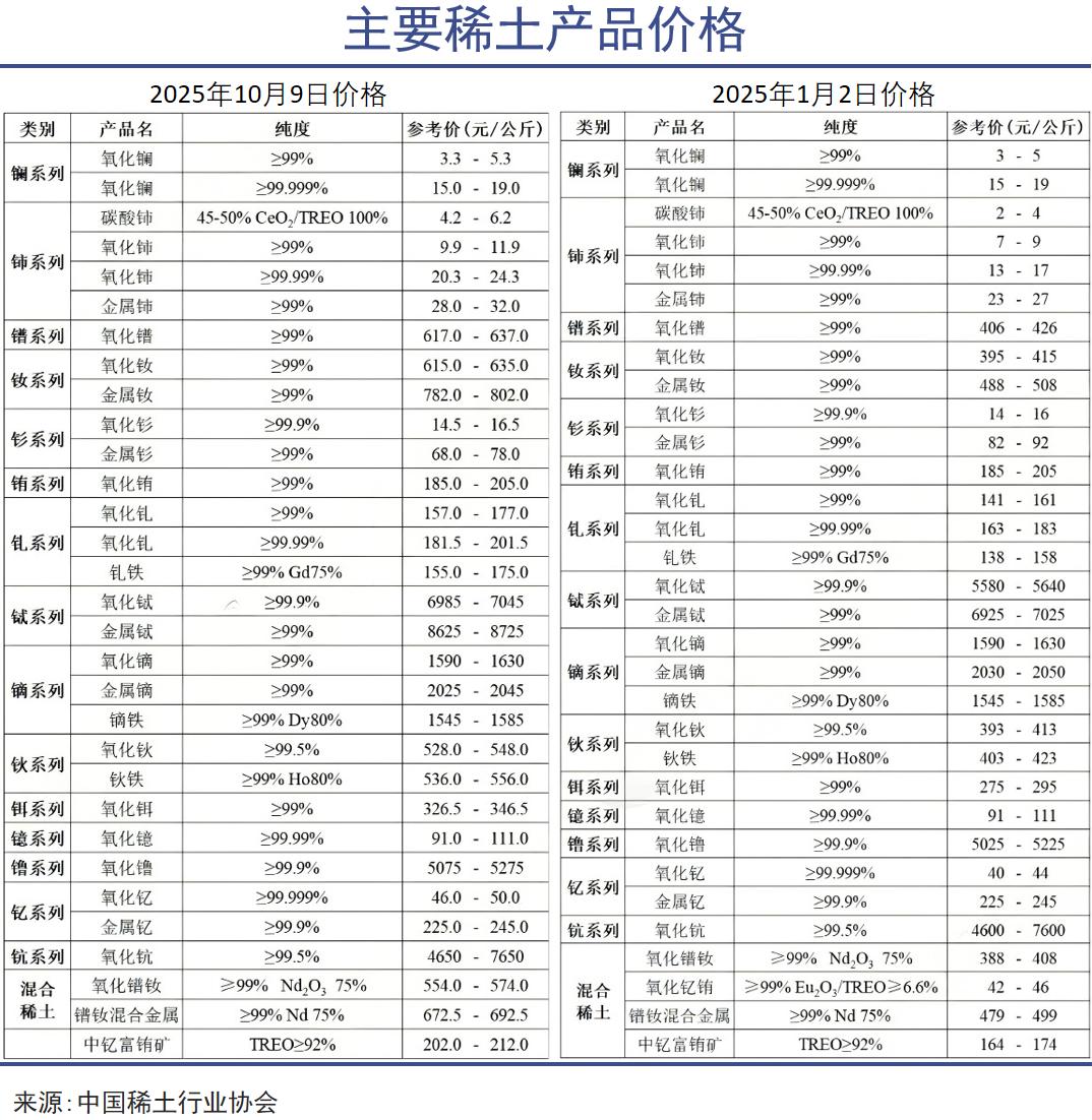 2025年8月22日,工信部、发改委、自然资源部发布《稀土开采和稀土冶炼分离总量调控管理暂行办法》,标志着稀土监管层级、管控范围、指标落实的全面升级。这些措施在一定程度上改变了过去小、散、乱的行业局面,提升了行业集中度,使得中国在稀土领域的定价权大幅提升。