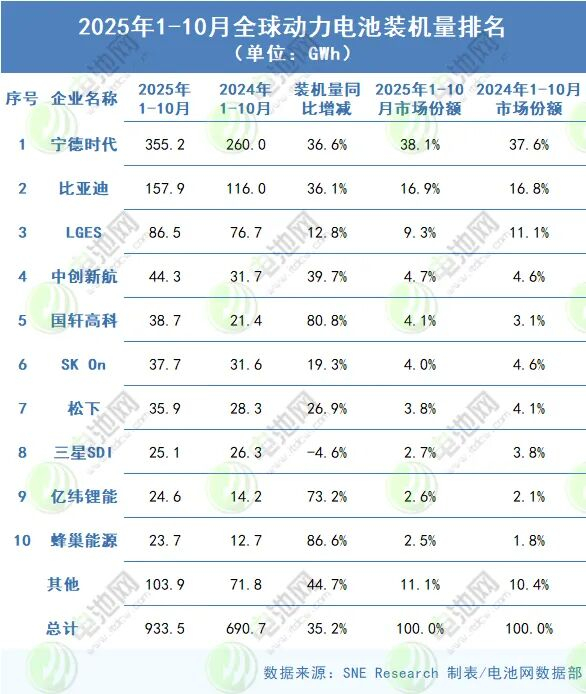 根据最新的报告,今年1-10月,全球动力电池装机量排名的前十位中,有6个中国企业。