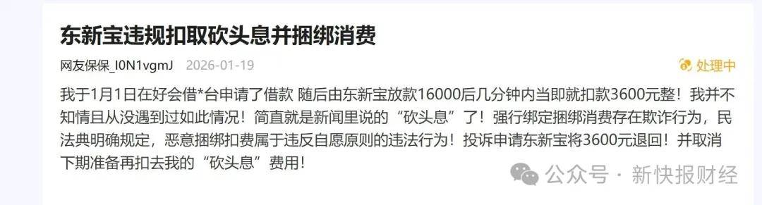 平台通过与第三方贷款平台合作,为泰深优选、东新宝等高息费产品导流,而这些产品往往以会员费的形式,在放款前或放款后迅速扣除大额费用,实质上构成了变相砍头息。据新快报财经报道,根据用户反馈,泰深优选是会员制商城,分期贷款服务中设置会员权益,会员权益营销突出“VIP通道”“优先审核”,会员权益与借款权益挂钩。会员费每期数百元,分三期支付,每期到期将自动续费。也有用户表示,其于好会借申请借款,随后由东新宝放款16000元,放款后几分钟内就扣款3600元。
